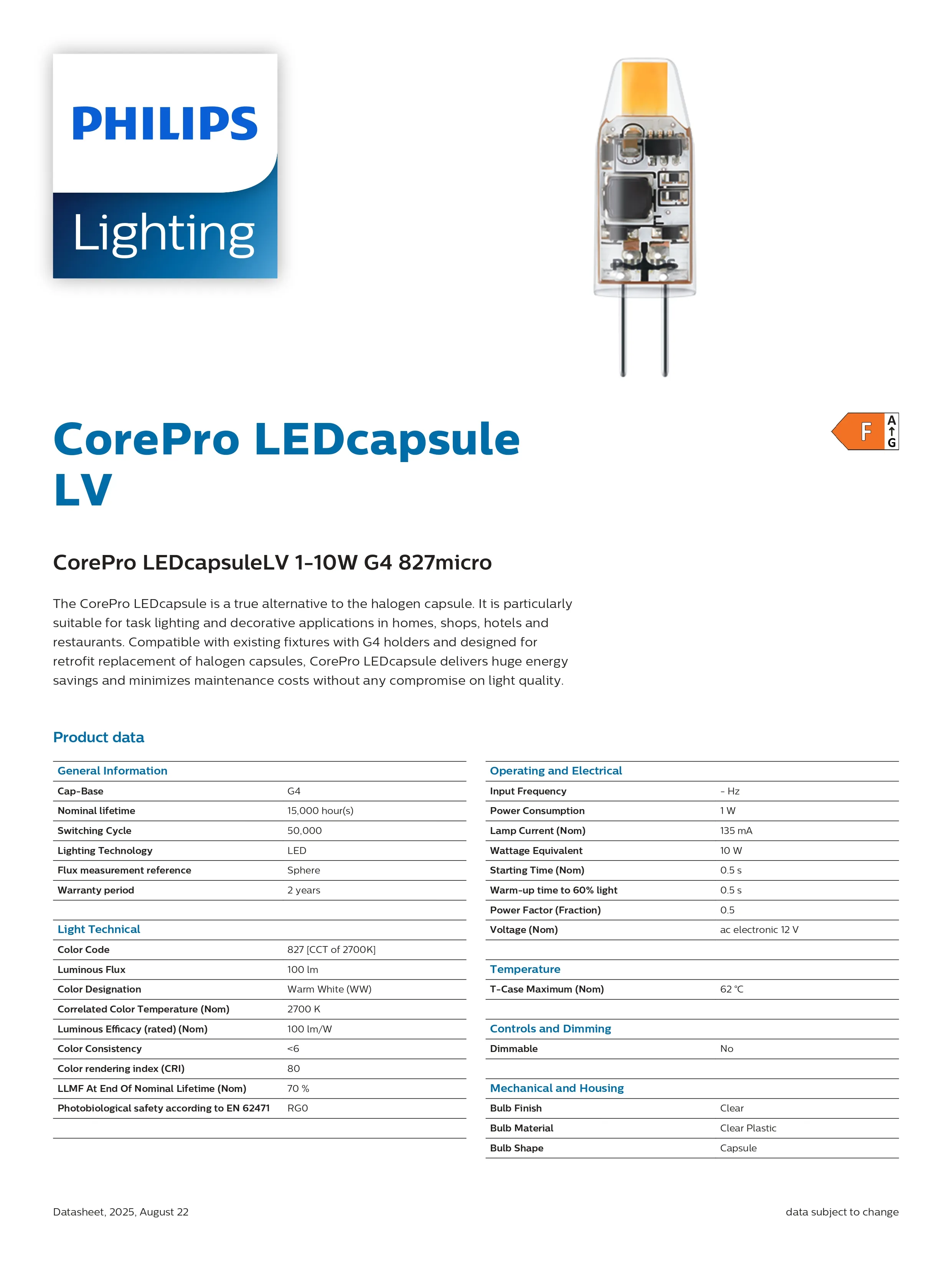 Bóng đèn CorePro LEDcapsuleLV 1-10W G4 827micro