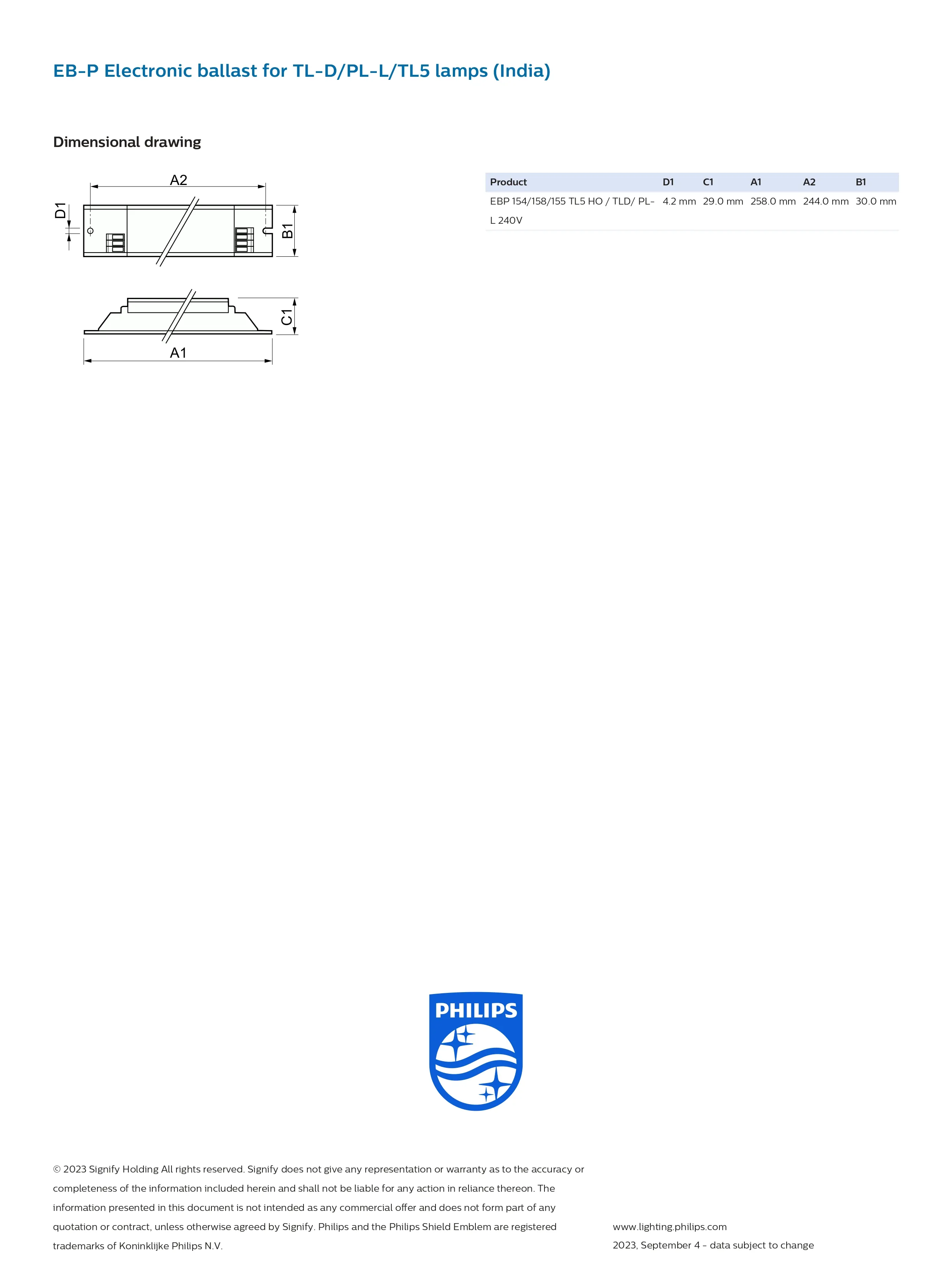 Chấn lưu điện tử Philips EB-P 158 dành cho bóng đèn huỳnh quang dưới 58W
