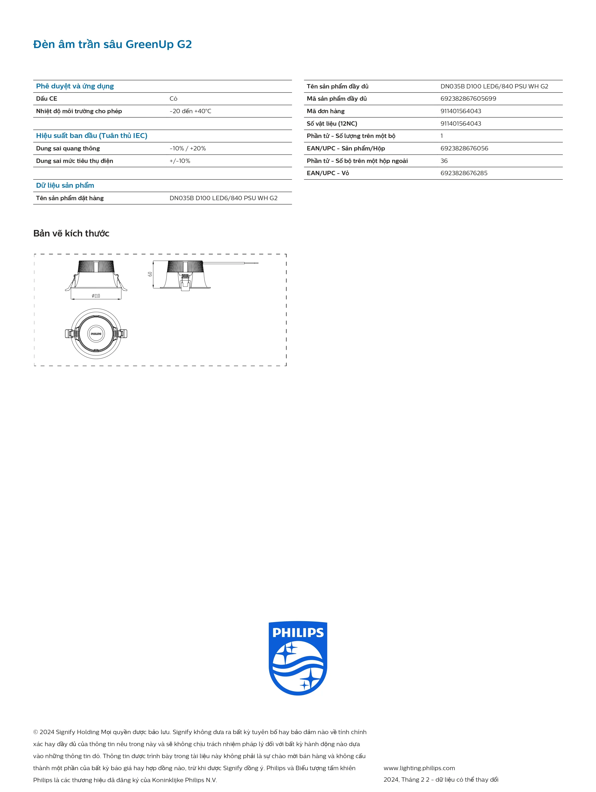 Đèn LED âm trần lỗ cắt 100 DN035B D100 LED6 840 PSU WH G2
