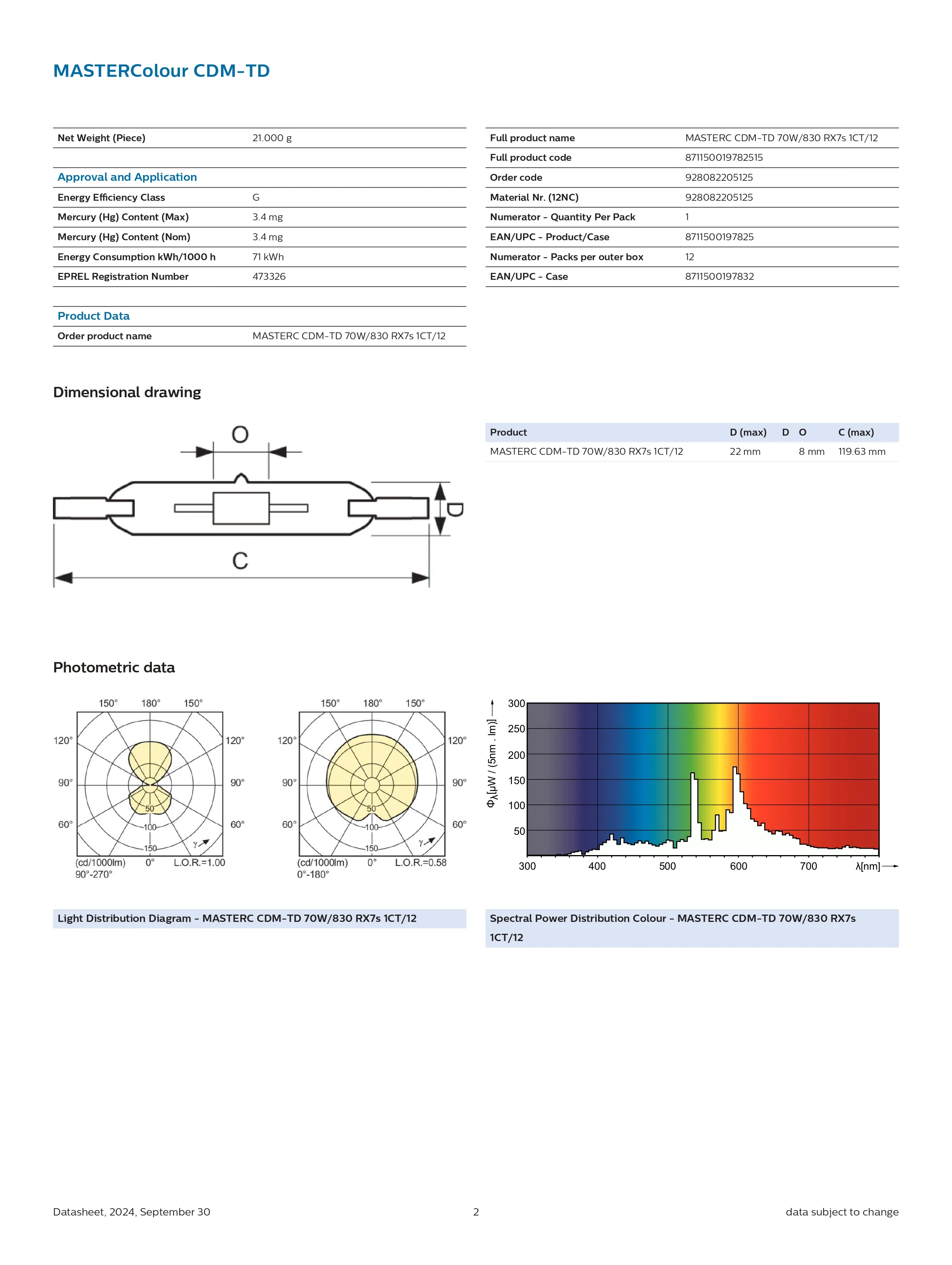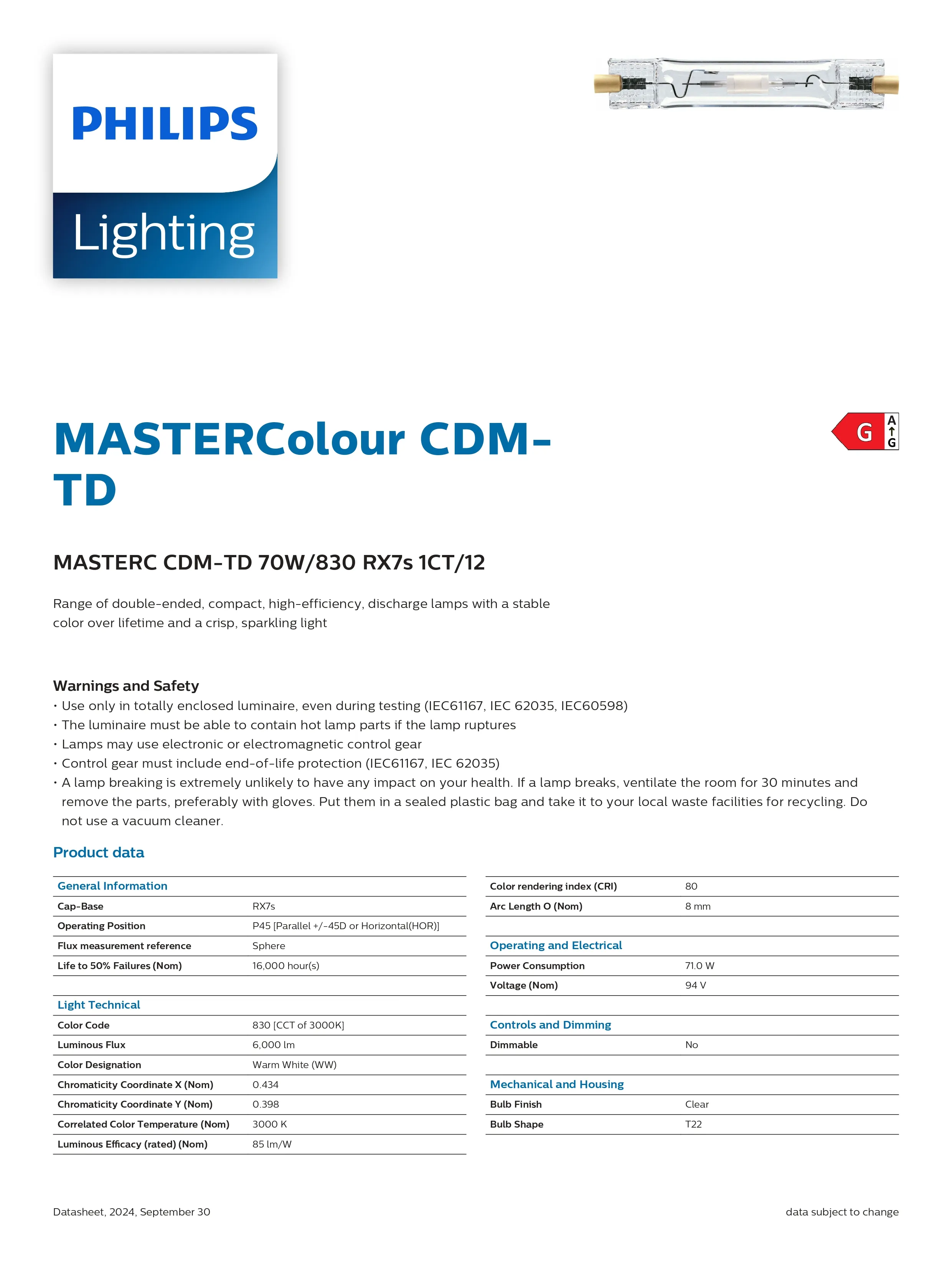 Bóng đèn cao áp Philips MASTERC CDM-TD 70W/830 RX7s 1CT/12