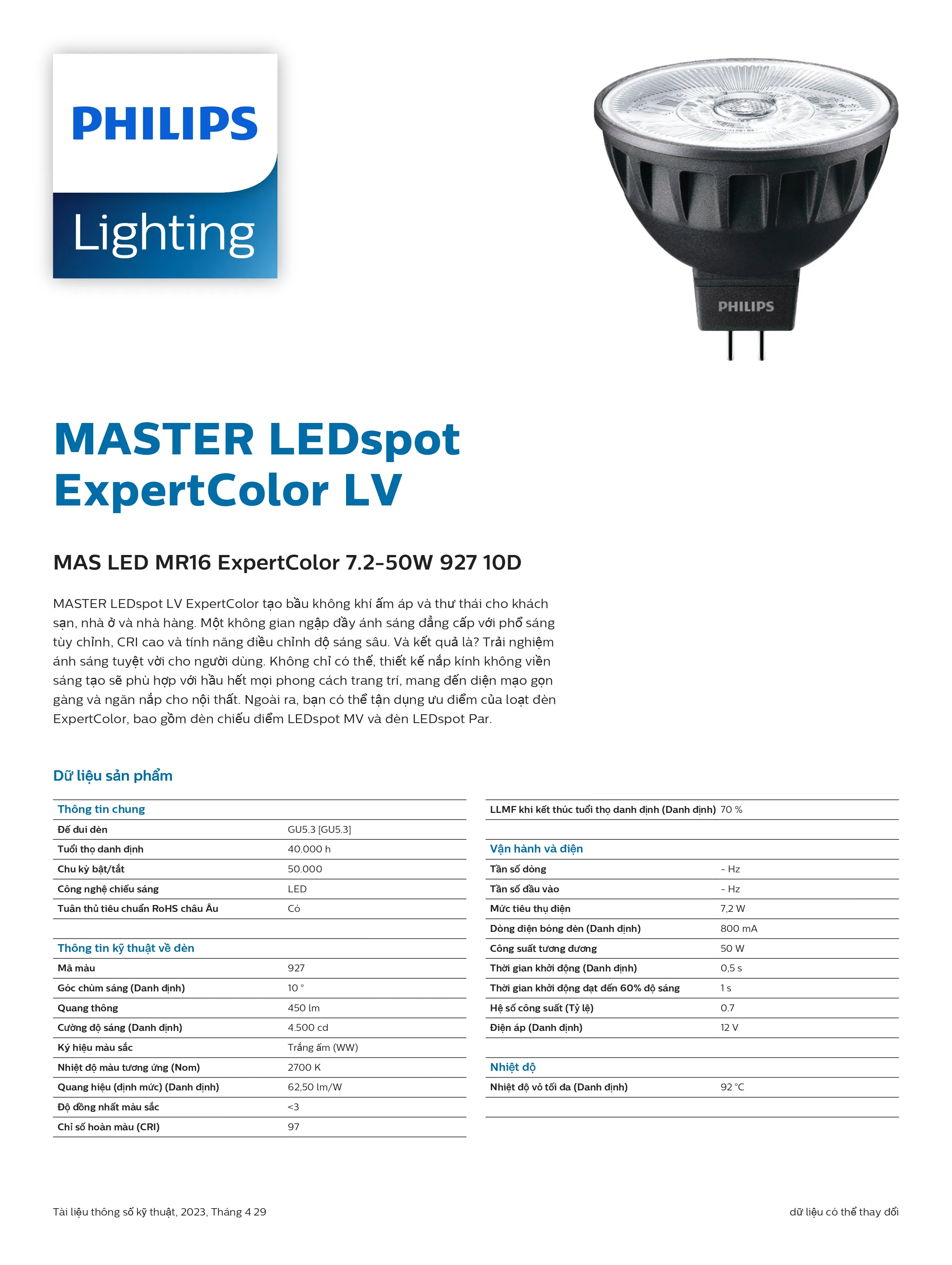 Bóng đèn Master Expercolor 7.2-50W 927 MR16 12V GU5.3 10D
