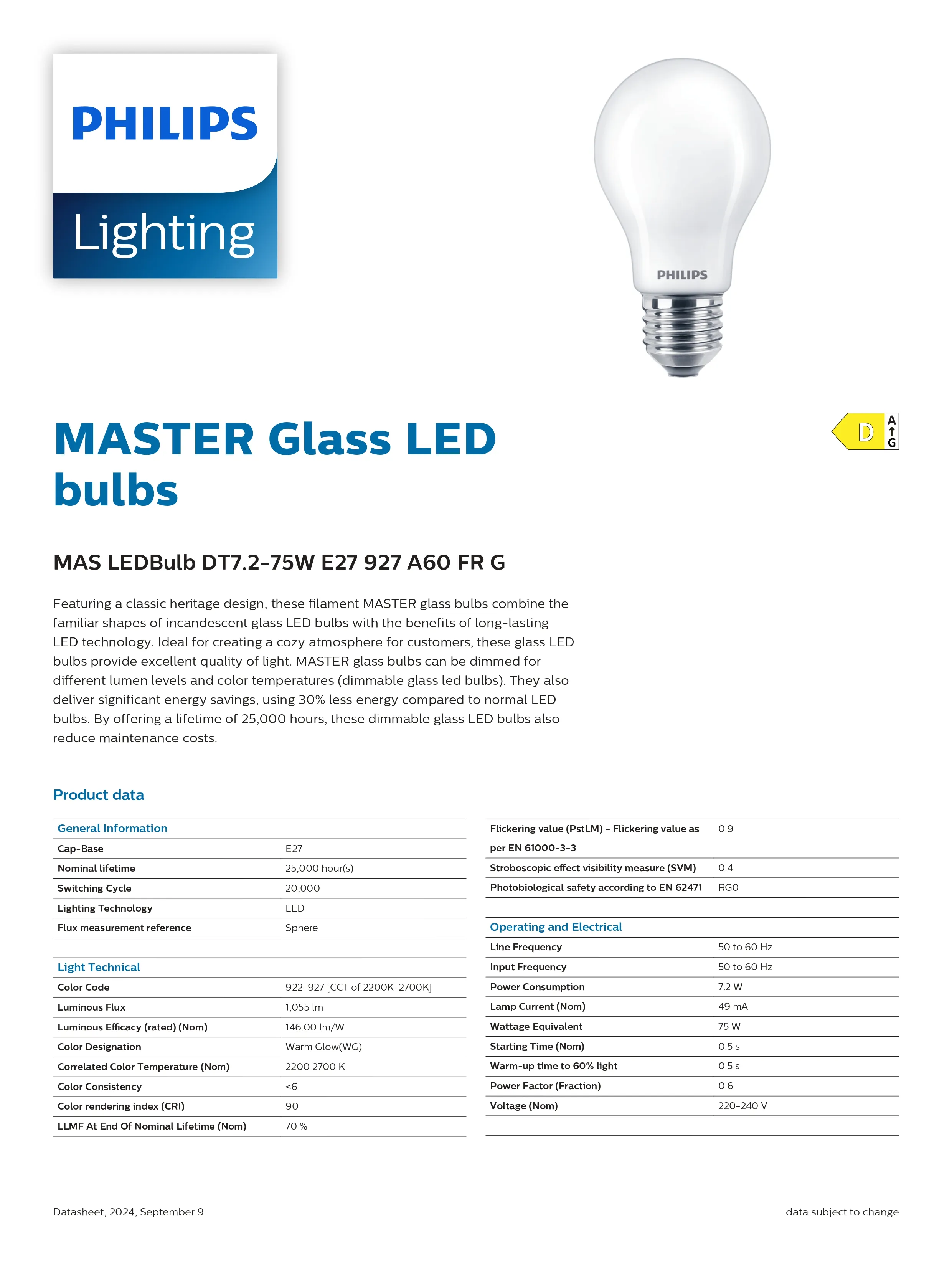 Bóng đèn MAS LEDBulb DT 7.2-75W E27 927 A60 FR G