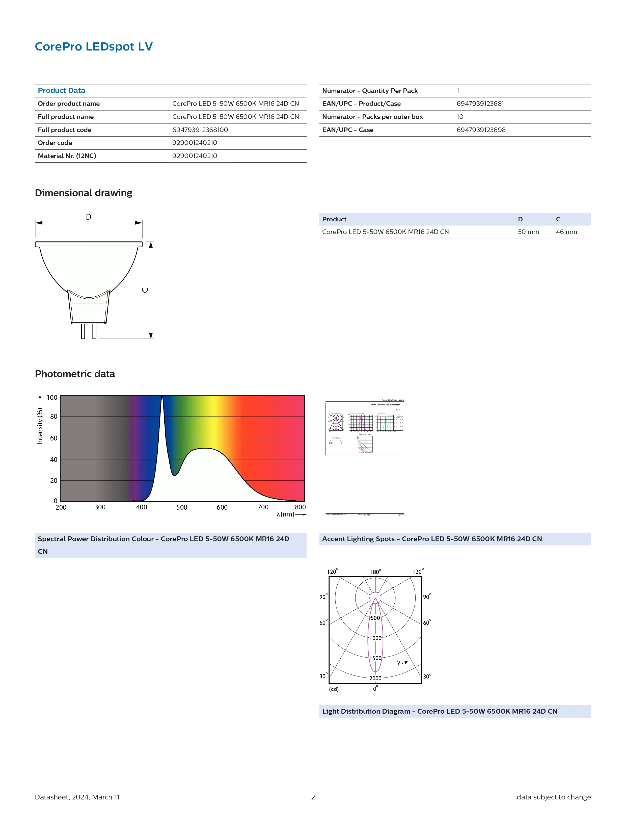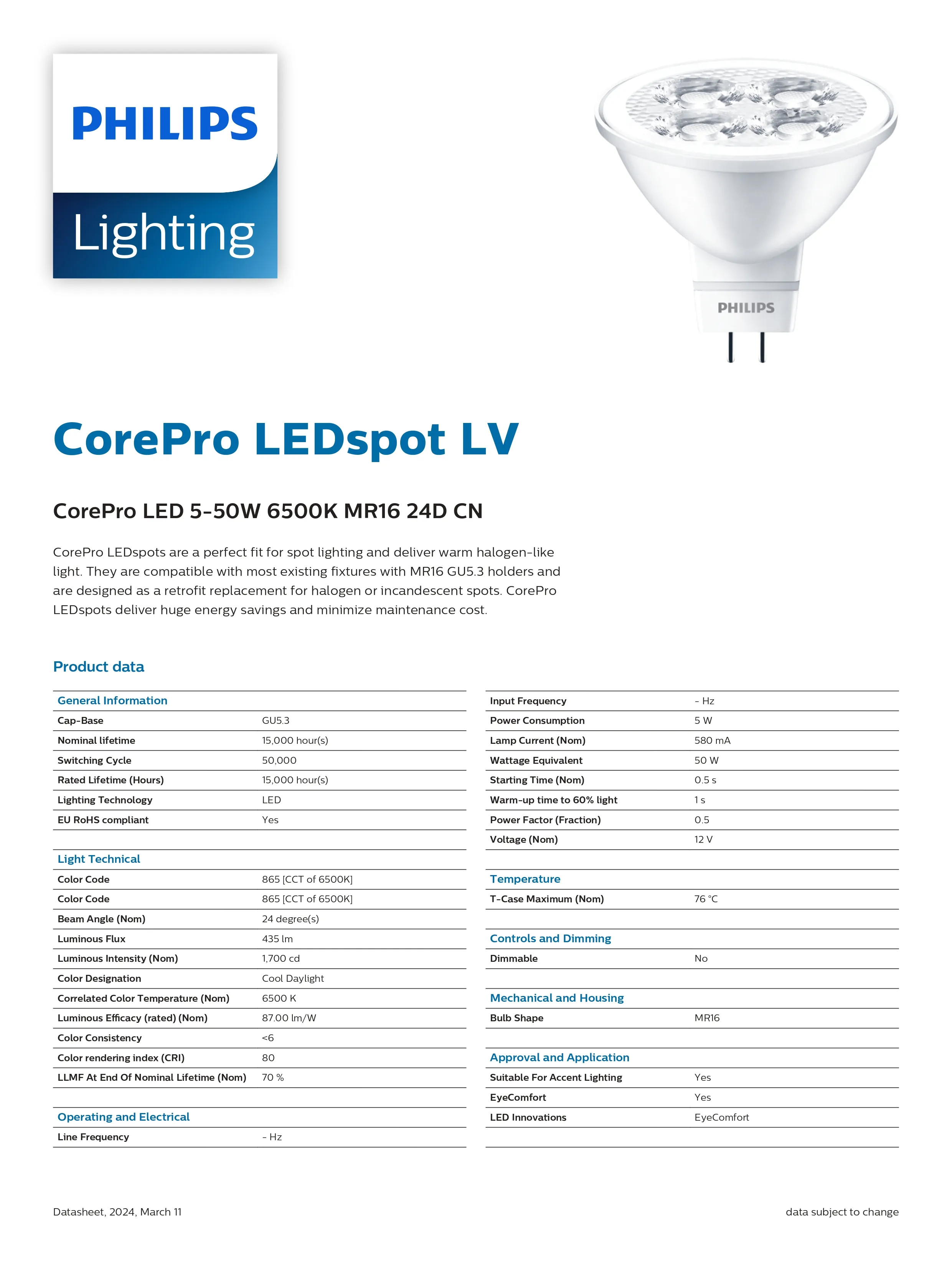💥 Ưu điểm nổi bật của Bóng CorePro Led 5-50W 6500K 12V MR16 24D: