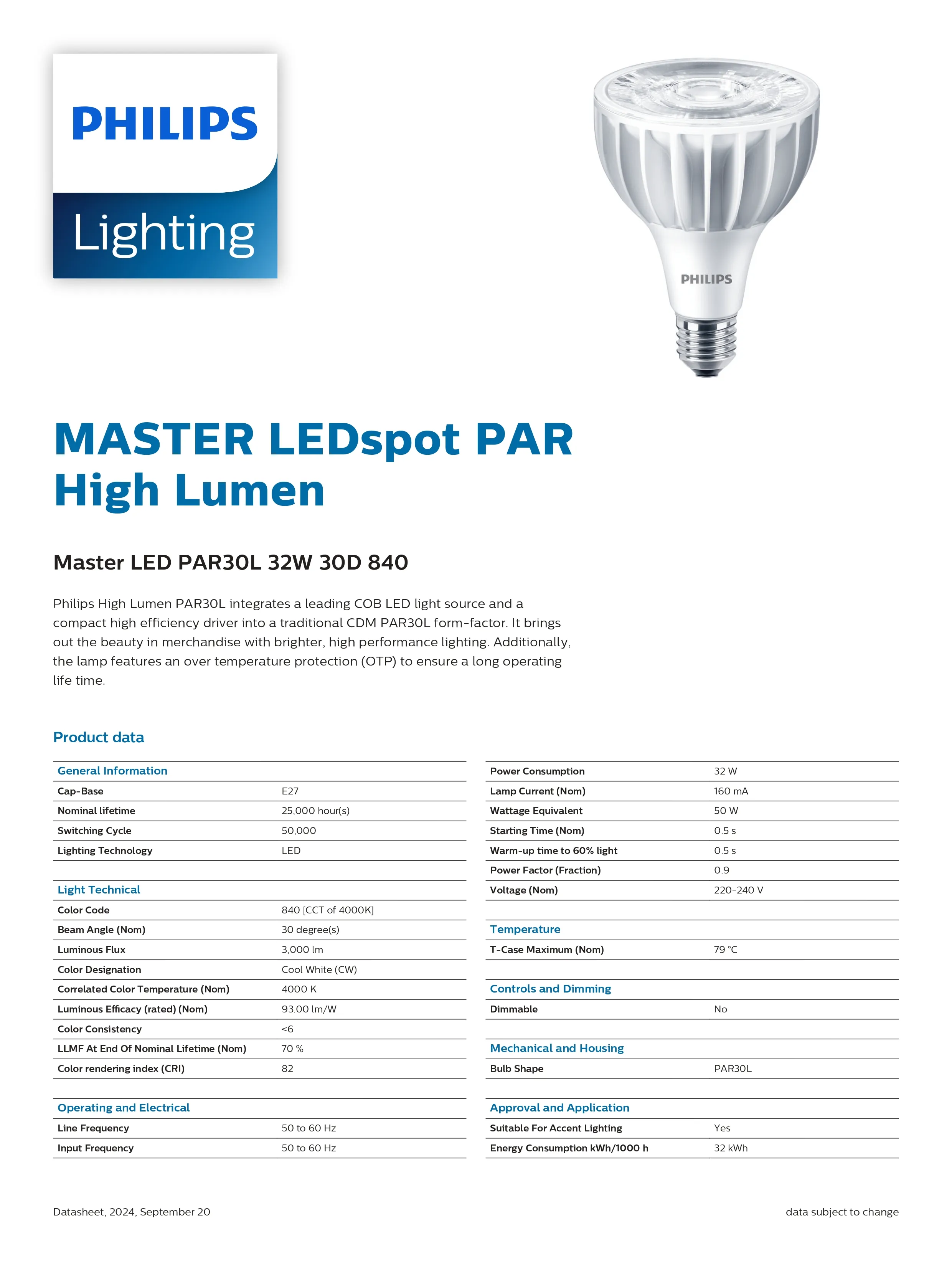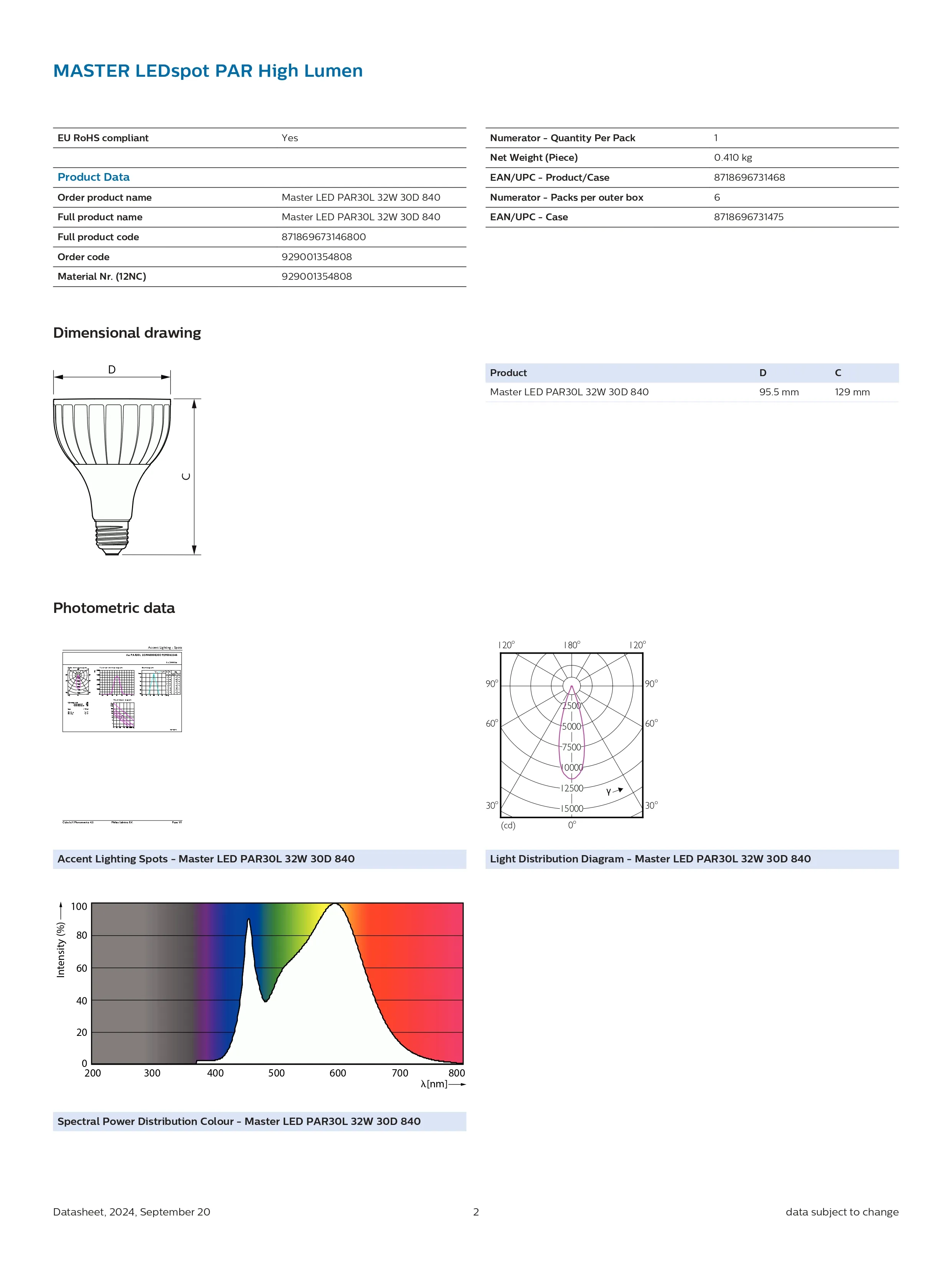 Bóng đèn Philips Master LED PAR30L 32W 4000k 30D SO