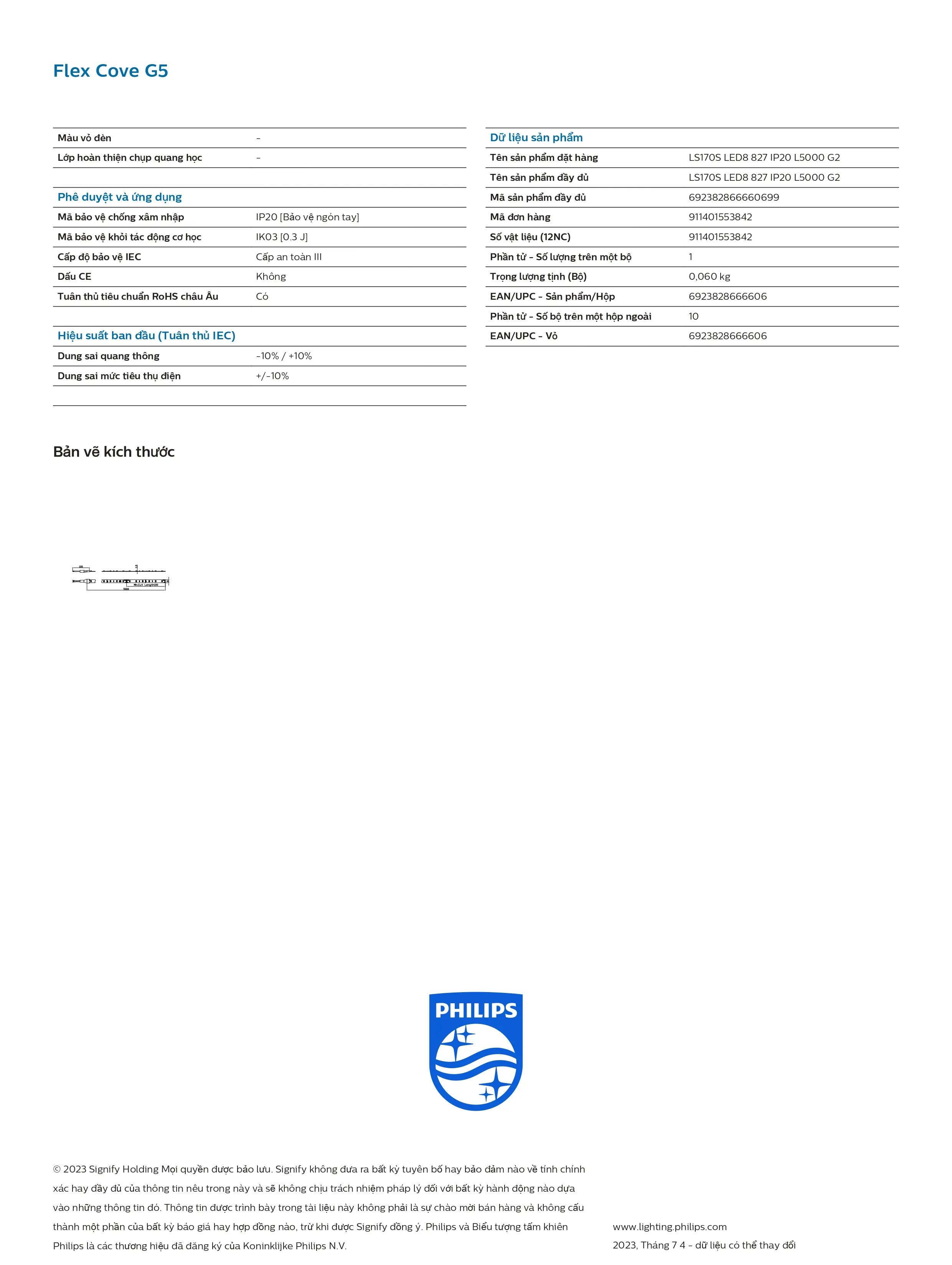 Đèn LED dây Philips LS170S LED8 827 Ip20 L5000 8,3w 800lm